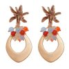 Pendientes de bolas de piedras Ágata y piedras nácar corales con cabezal de hojas