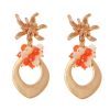 Pendientes de bolas de piedras Ágata y piedras nácar corales con cabezal de hojas