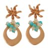 Pendientes de lágrima de oro con bolas de piedra Ágata en tonos verdes y cabezal de flor