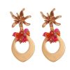 Pendientes de lágrima de oro con bolas de piedra Ágata corales y cabezal de flor