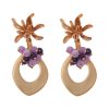 Pendiente de flamenca de lágrima de piedra cristal color buganvilla con cabezal de hojas