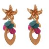 Pendientes de lágrima de oro con pétalos en color rojo con cabezal de flor