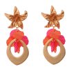 Pendientes de lágrima de oro con bolas de piedra Ágata multicolores y cabezal de flor