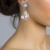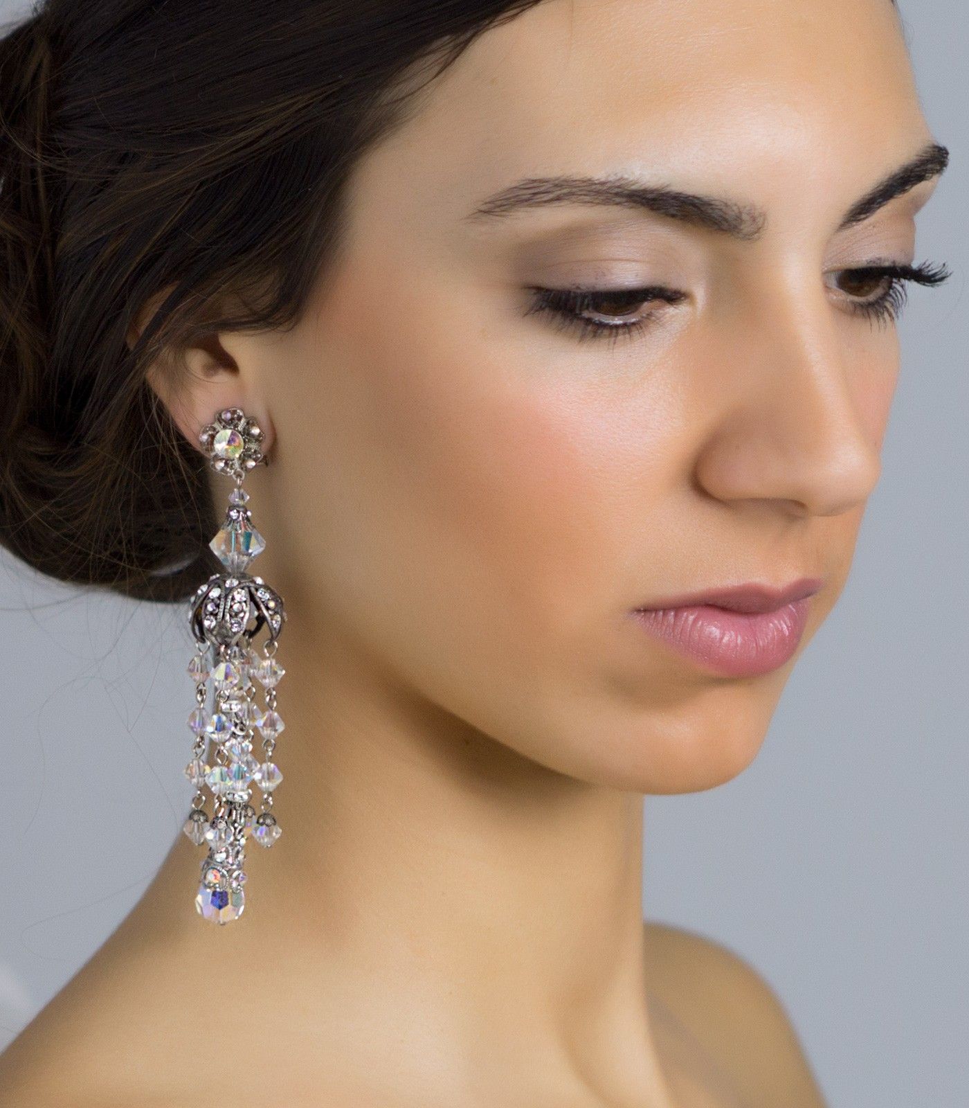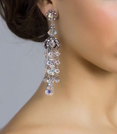 Pendientes para novias que quieren que sus orejas no pasen desapercibidas. Con tacha formada por cristal Swarovski , fornitura metálica en el centro y cuelgan de la pieza cristal de pequeño tamaño en forma de rombo. Ideales para lucir con un vestido con hombros descubiertos.