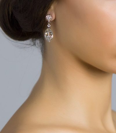 Elegancia de la mano de esta pieza única. Con tacha de cristal Swarovski y elegancia cristal de pequeño tamaño en el cuerpo del pendiente. Idóneos tanto para novia como madrinas que quieran ir sencillas pero muy elegantes.