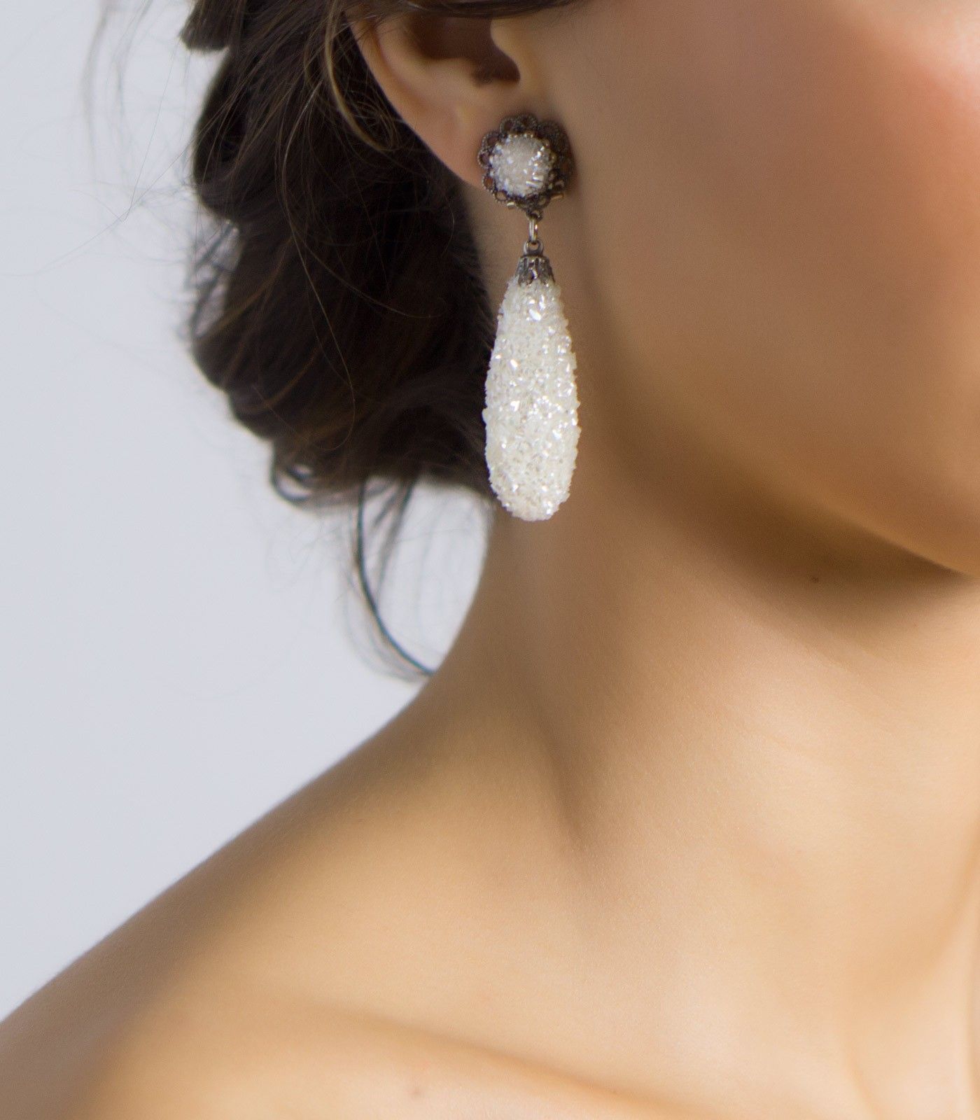 Lágrima de nácar y fornitura metálica.