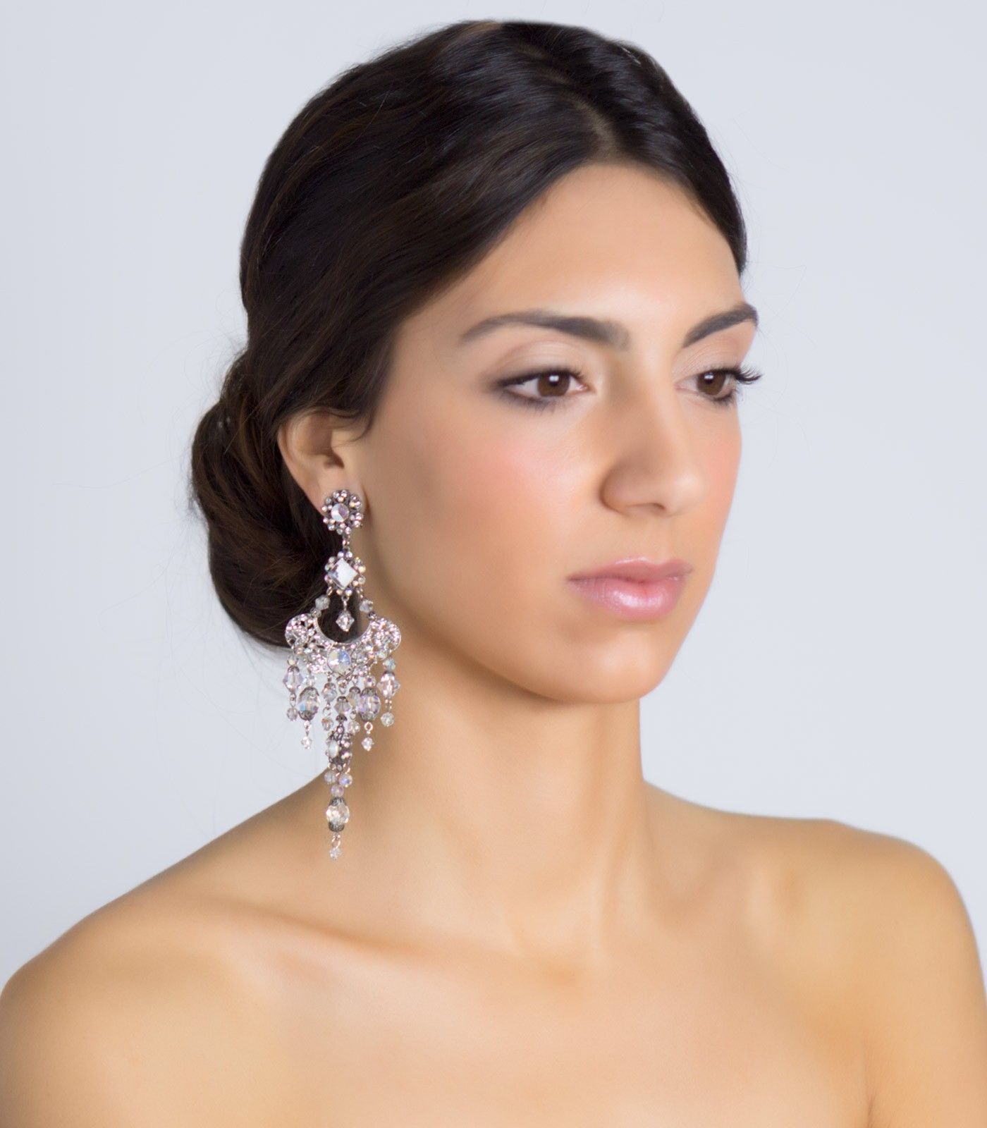Pendientes inspirados en majestuosas lámparas de castillos de ensueños. Compuesto en su totalidad por cristal e incrustaciones de cristal Swarovski. Brillarás en tu día.