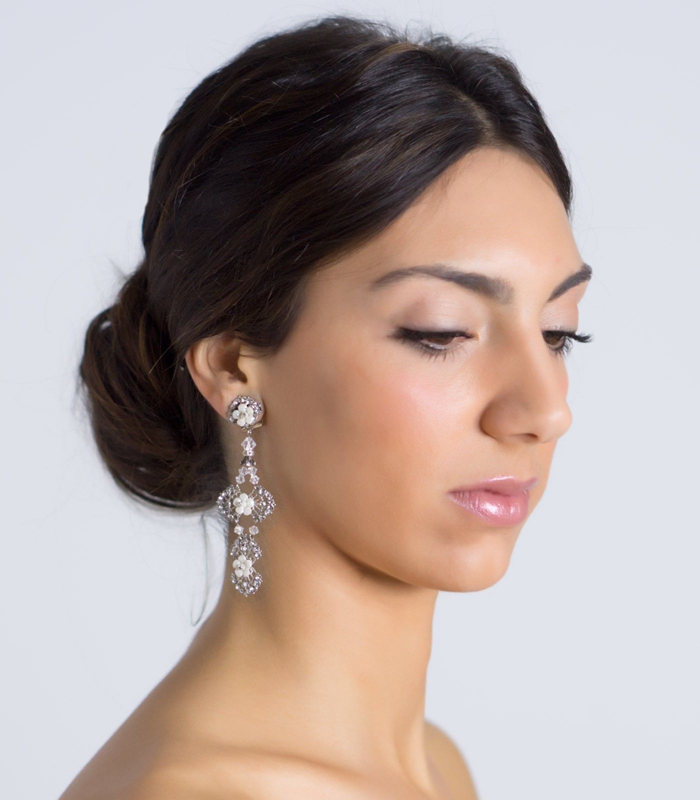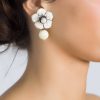 Elegantes pendientes con tacha de flor blanca rodeada de cristal Swarovski. El cuerpo de la pieza la forman otras dos flores más blancas acompañadas de cristal Swarovski. Para las amantes de el aspecto floral.