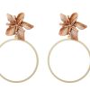 Pendiente dorado de dos esferas marrón con círculo labrado central y aplique dorado labrado