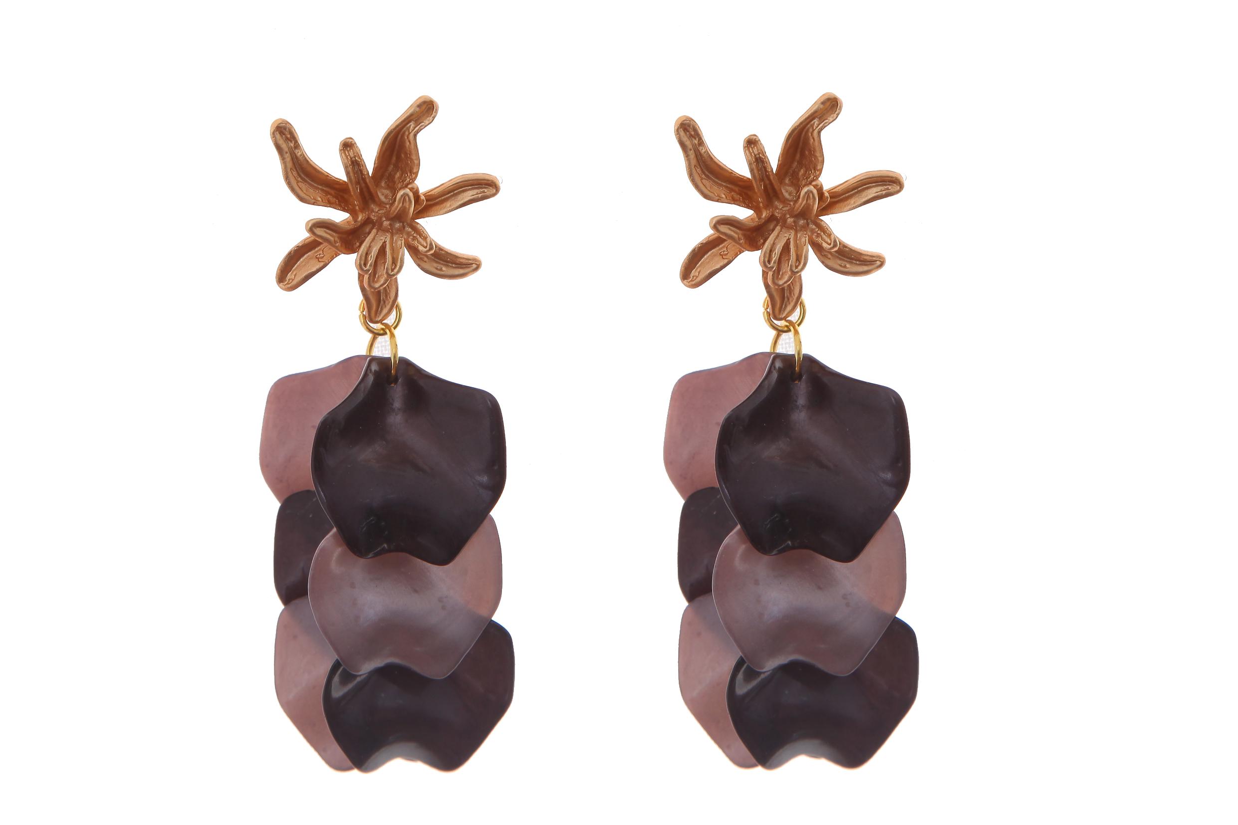 Pendientes de pétalos en color negro con cabezal de hojas