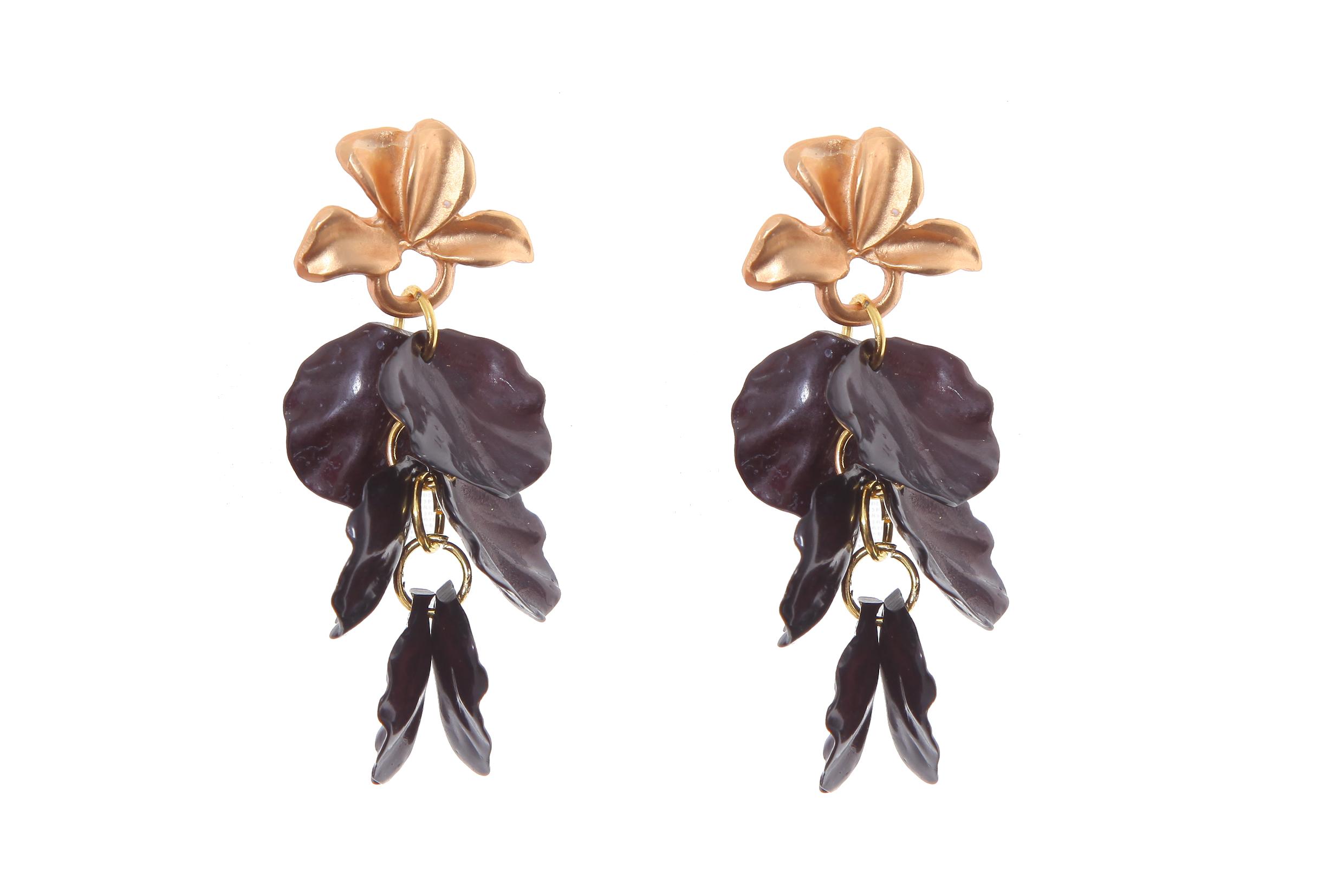 Pendientes de pétalos en color negro con cabezal en forma de hojas
