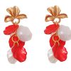Pendientes de bolas de piedras Ágata multicolor con cabezal de flor