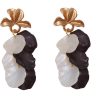 Pendientes de bolas de piedras Ágata y piedras nácar corales con cabezal de hojas