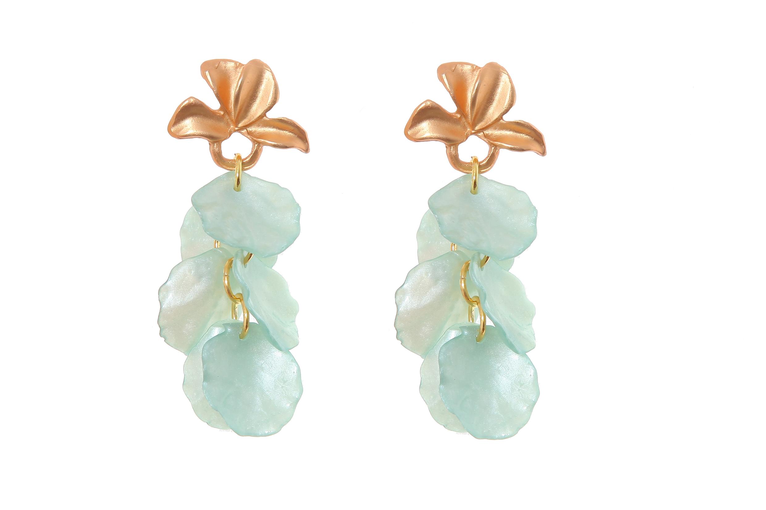 Pendientes de pétalos en color verde jabonoso con cabezal en forma de hojas