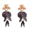 Broche dorado de nenúfar con bolas de piedra Ágata en negro