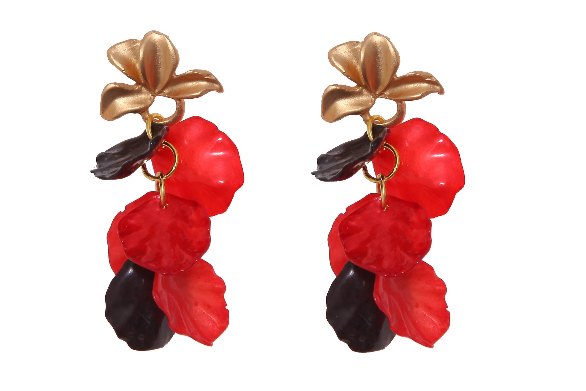 Pendientes de pétalos en rojo y negro con cabezal en forma de hojas
