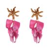 Pendientes de bolas de piedras Ágata y piedras nácar corales con cabezal de hojas
