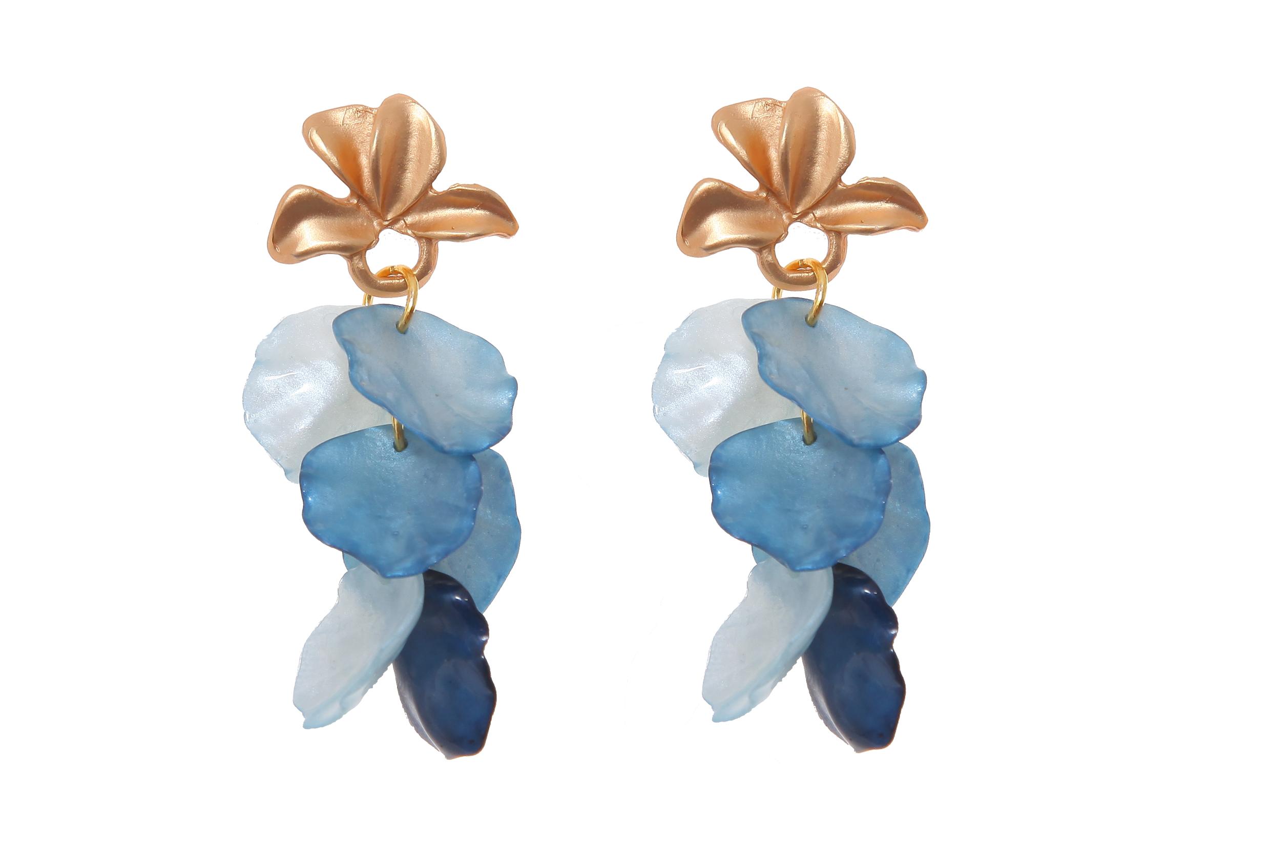 Pendientes de pétalos en tonos azules con cabezal en forma de hojas