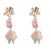 Pendientes de pétalos y piedras nácar en color beige con cabezal de hojas