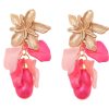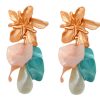 Pendientes de bolas de piedras Ágata multicolor con cabezal de flor