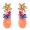 Pendientes de bolas de piedras Ágata multicolor con cabezal de flor