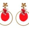 Pendientes de bolas de piedras Ágata rojas con cabezal de nenúfar