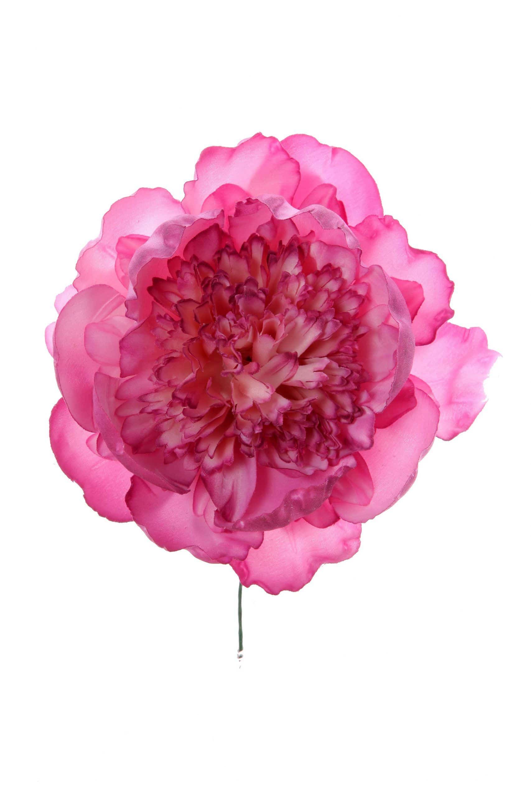 Peonia de flamenca rizada color malva, de tamaño grande, con un diámetro aproximado de 16 cms. Elaborada artesanalmente en Sevilla.