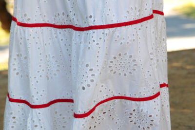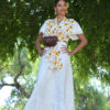 Pendientes dorados en forma de lágrima con cabezal con tres flores blancas