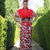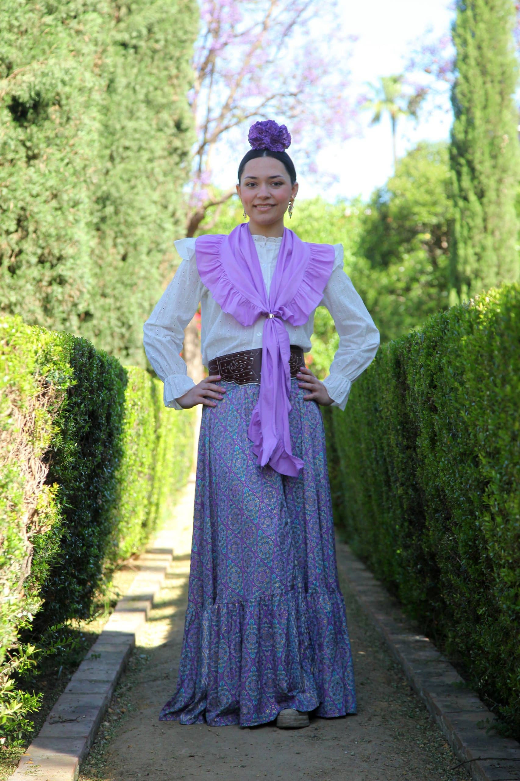 Ramillete de flamenca en tonos azul azafata, cardenal y coral