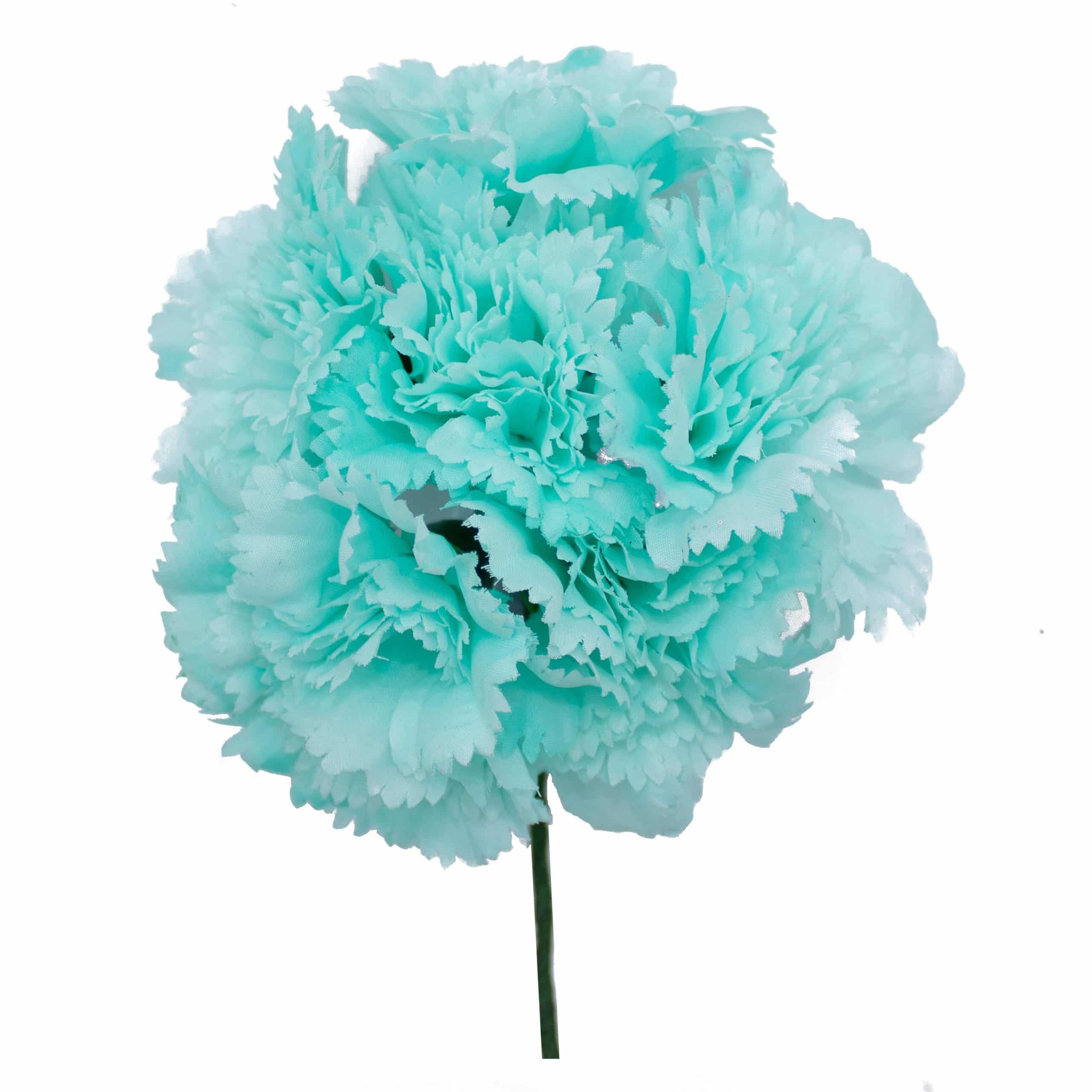 Ramillete de claveles de flamenca de tamaño grande, con un diámetro aproximado de 16 cms y color Aguamarina Pastel. Ideal para colocar en forma de ramillete y también en forma de tiara. Elaborada artesanalmente en Sevilla.