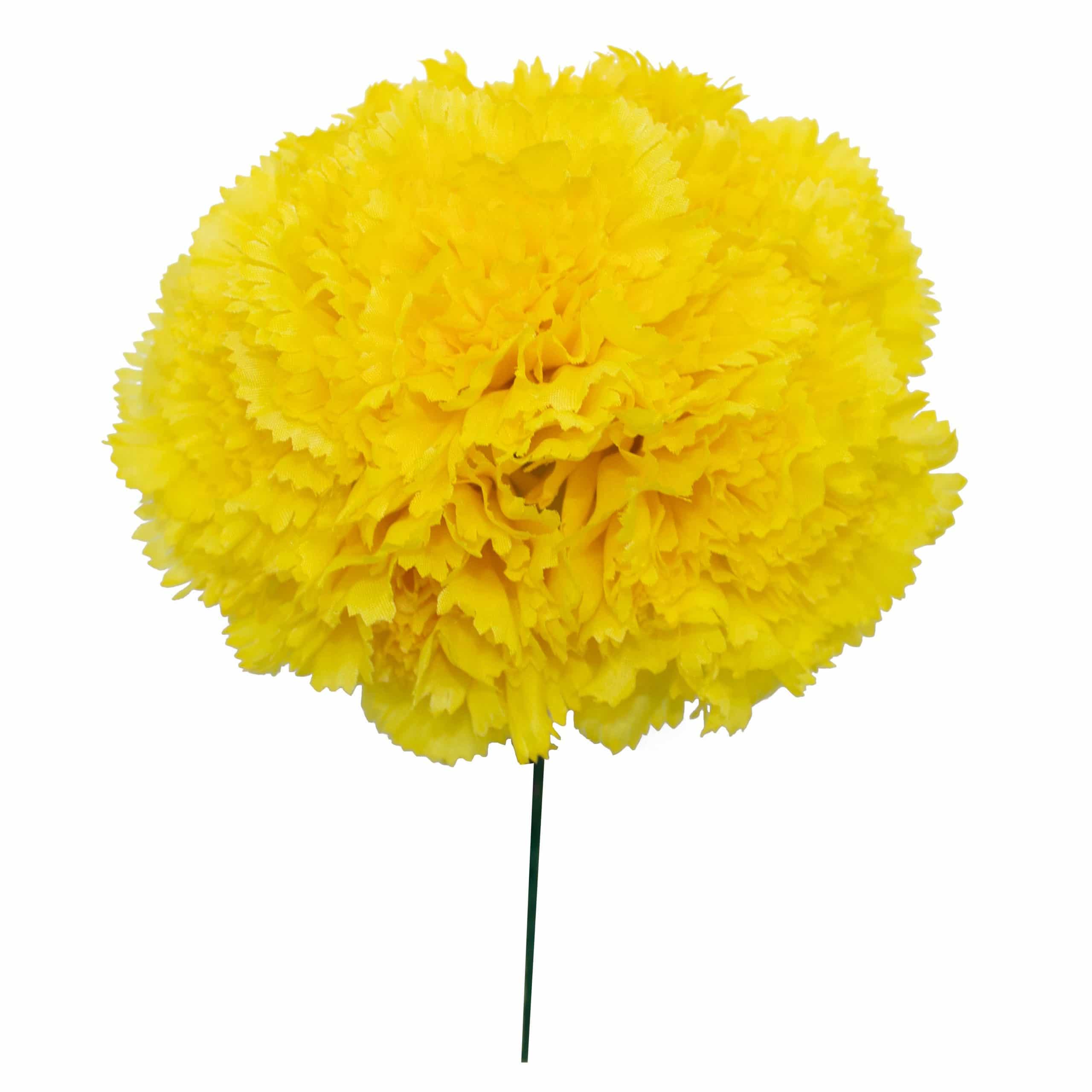 Ramillete de claveles de flamenca de tamaño grande, con un diámetro aproximado de 16 cms y color Amarillo. Ideal para colocar en forma de ramillete y también en forma de tiara. Elaborada artesanalmente en Sevilla.