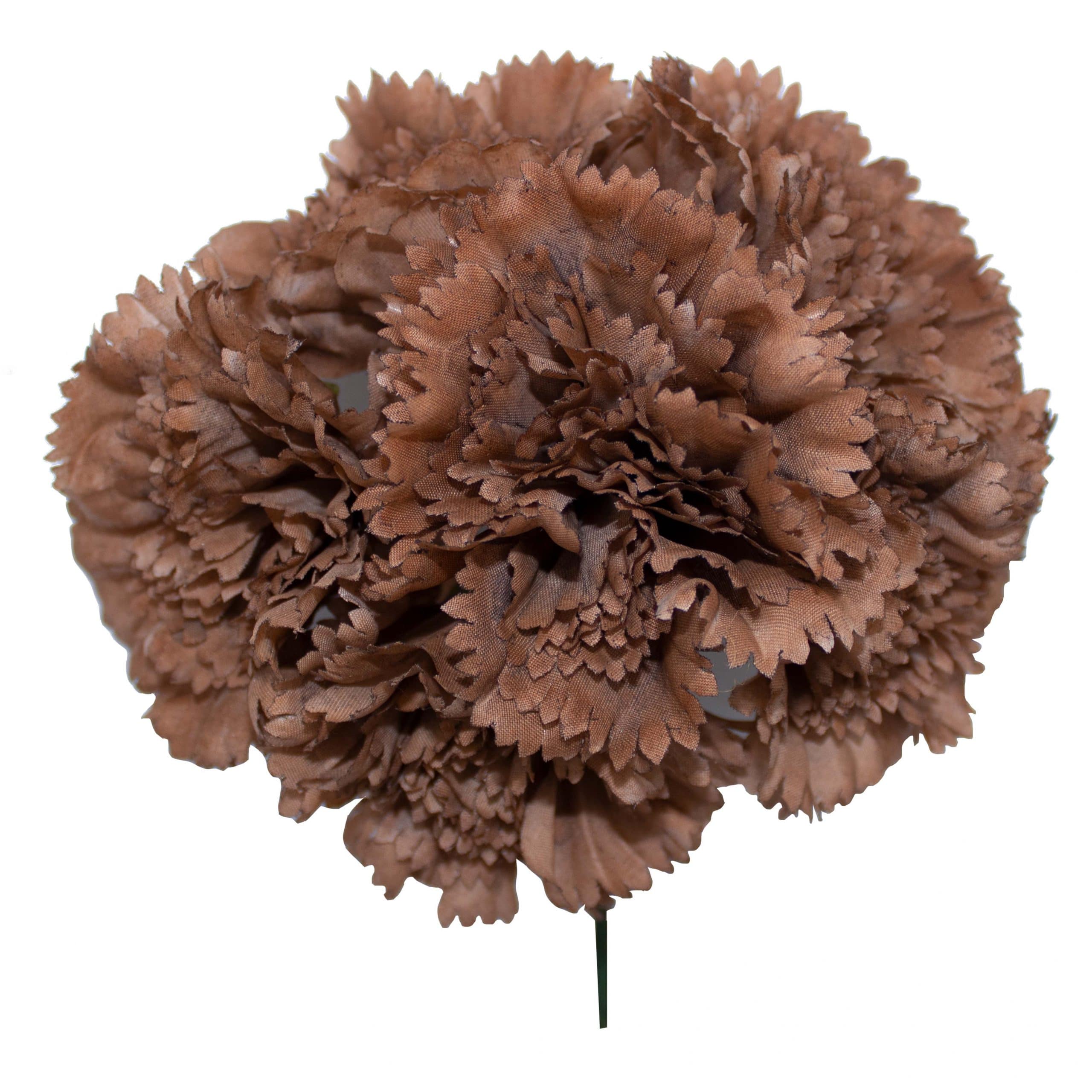 Ramillete de claveles de flamenca de tamaño grande, con un diámetro aproximado de 16 cms y color Marrón. Ideal para colocar en forma de ramillete y también en forma de tiara. Elaborada artesanalmente en Sevilla.