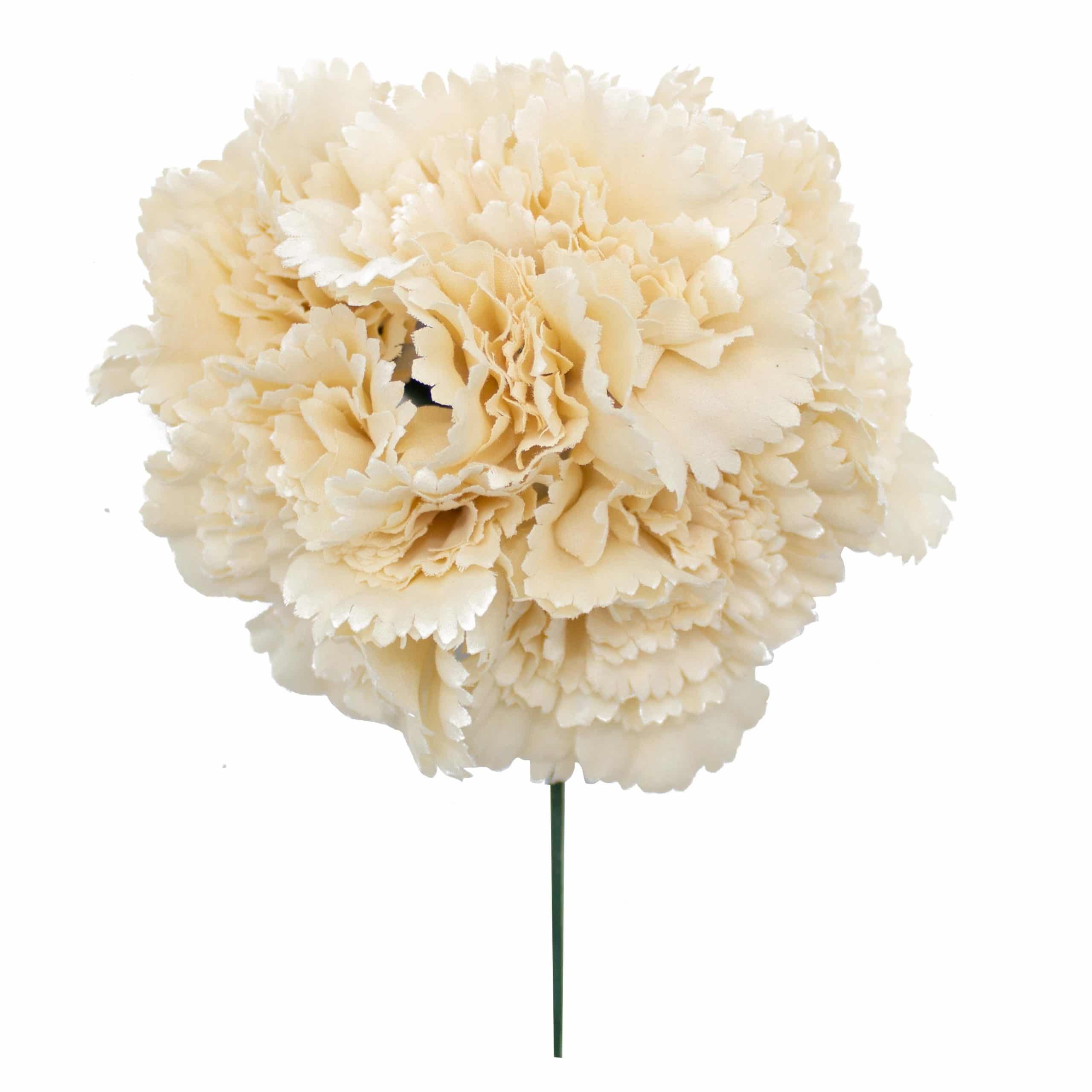 Ramillete de claveles de flamenca de tamaño grande, con un diámetro aproximado de 16 cms y color Vainilla. Ideal para colocar en forma de ramillete y también en forma de tiara. Elaborada artesanalmente en Sevilla.