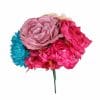Ramillete tiara de flamenca multicolor en tonos rojo coral, azul azafata, buganvilla y albero.