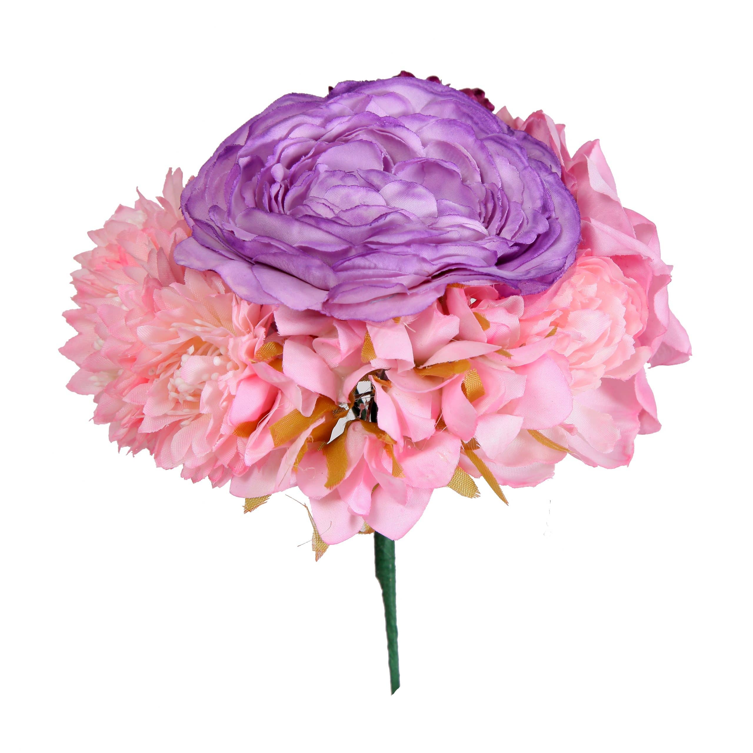 Ramillete tiara de flamenca multicolor en tonos rosa lila, malva y cardenal.