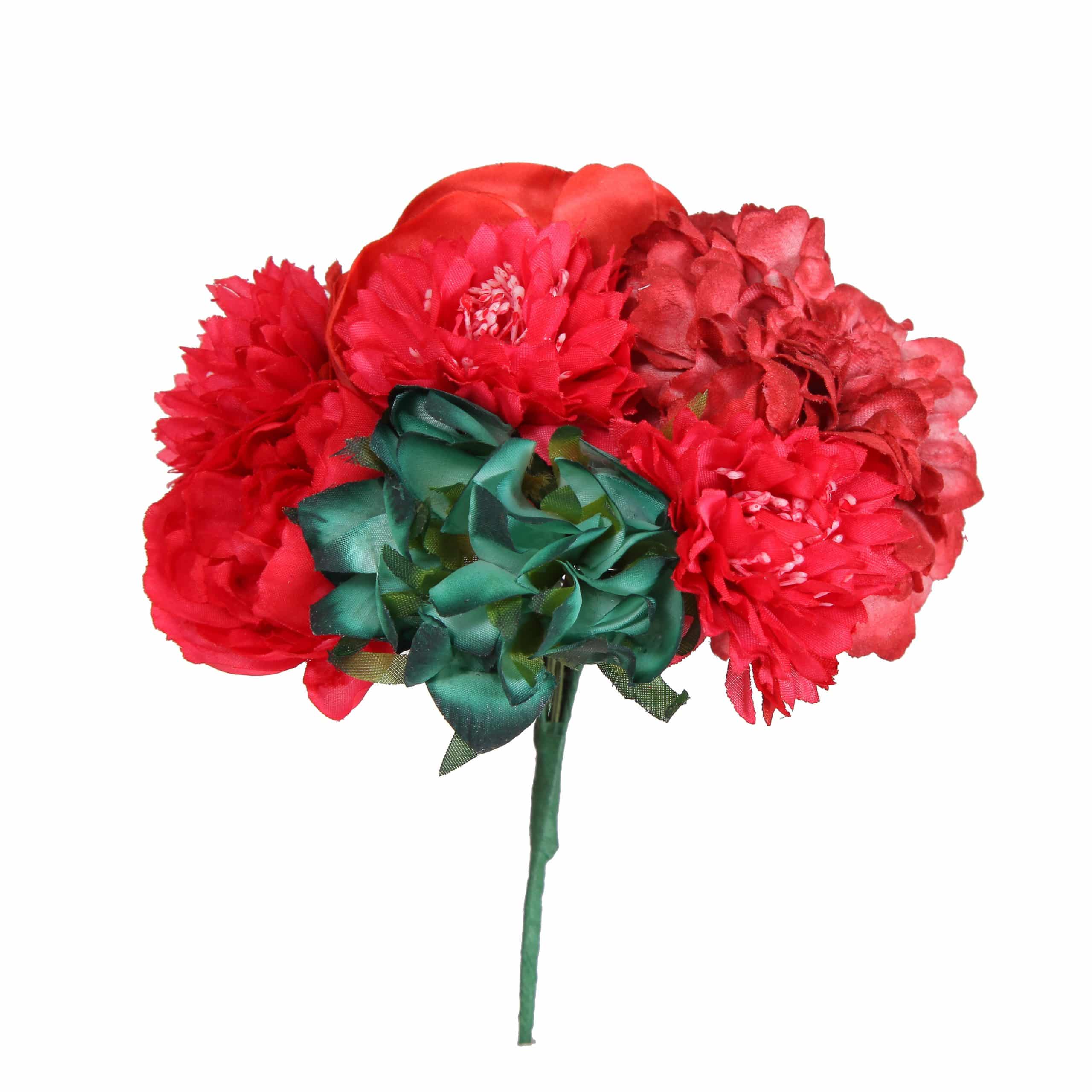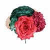 Ramillete tiara de flamenca multicolor en tonos rojos, caldera y verde botella.