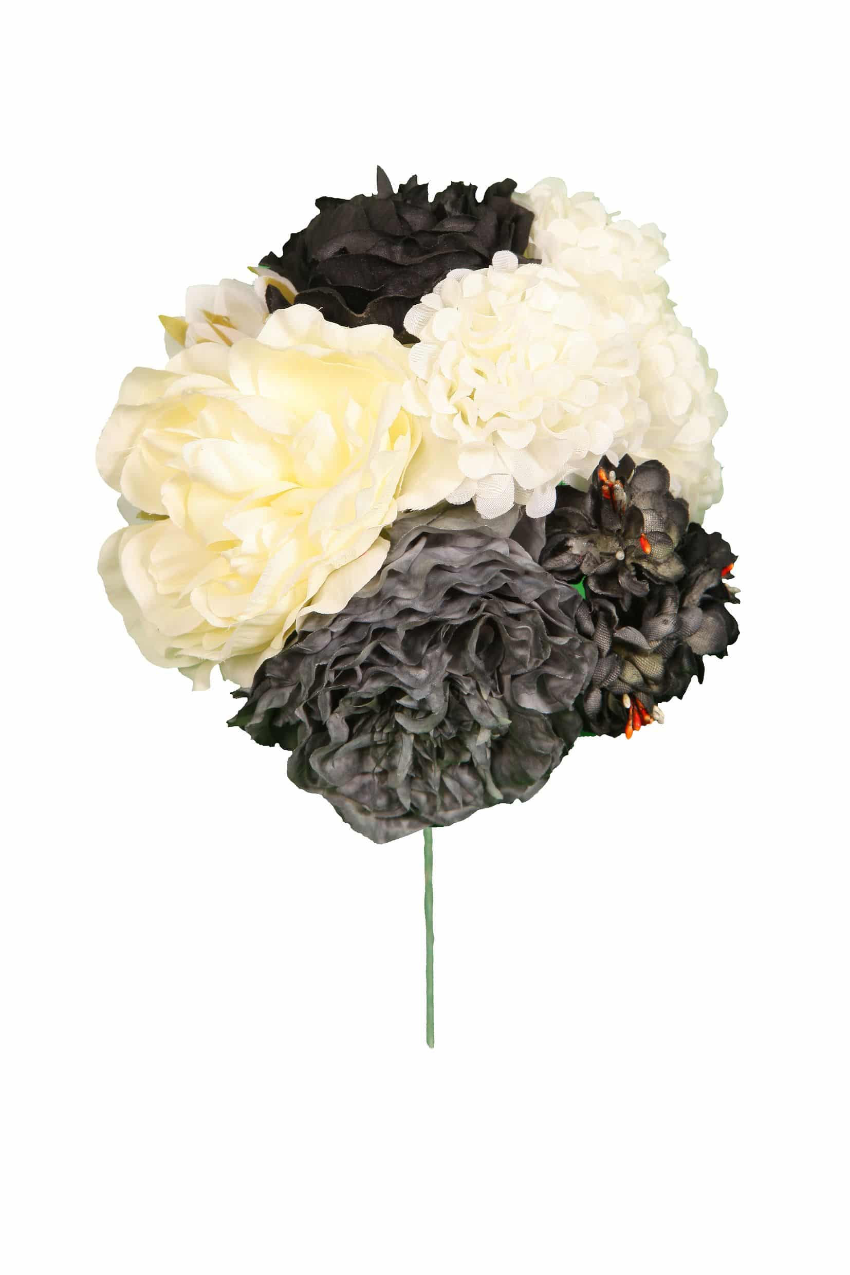 Ramillete tiara de flamenca multicolor en tonos blanco y negro