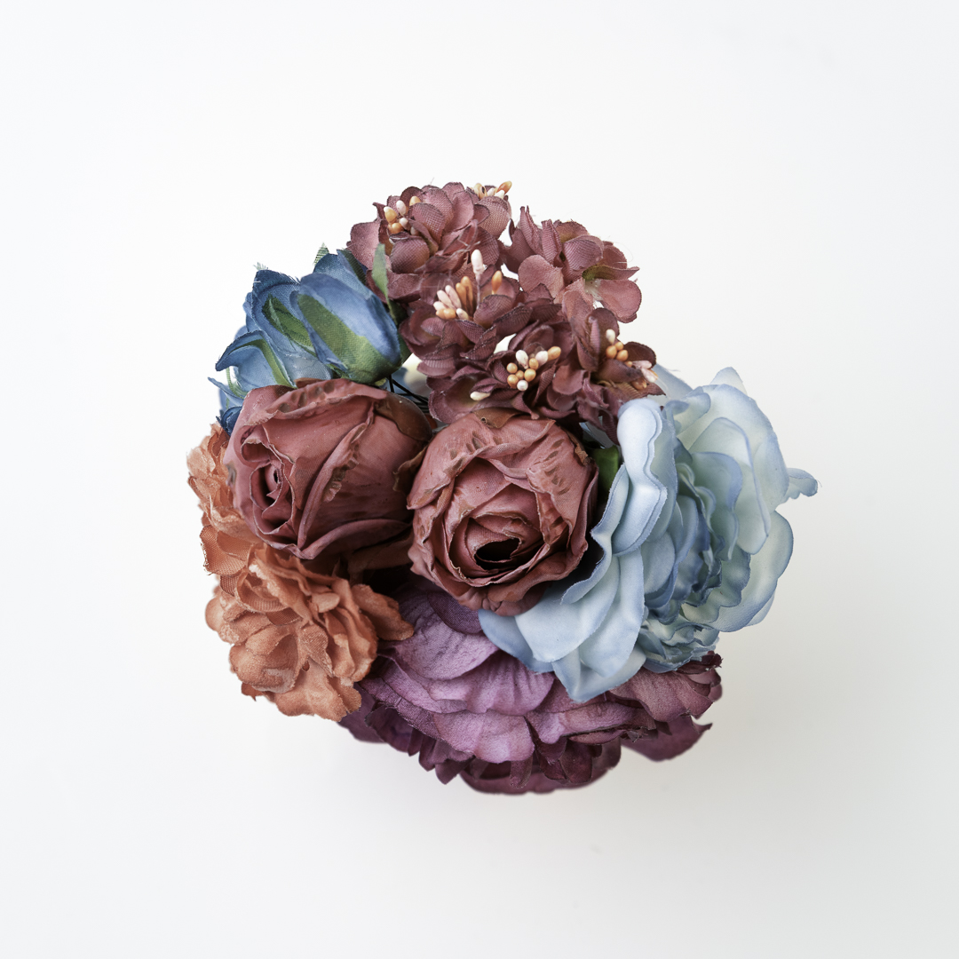 Ramillete tiara de flamenca multicolor en tonos buganvilla y azul