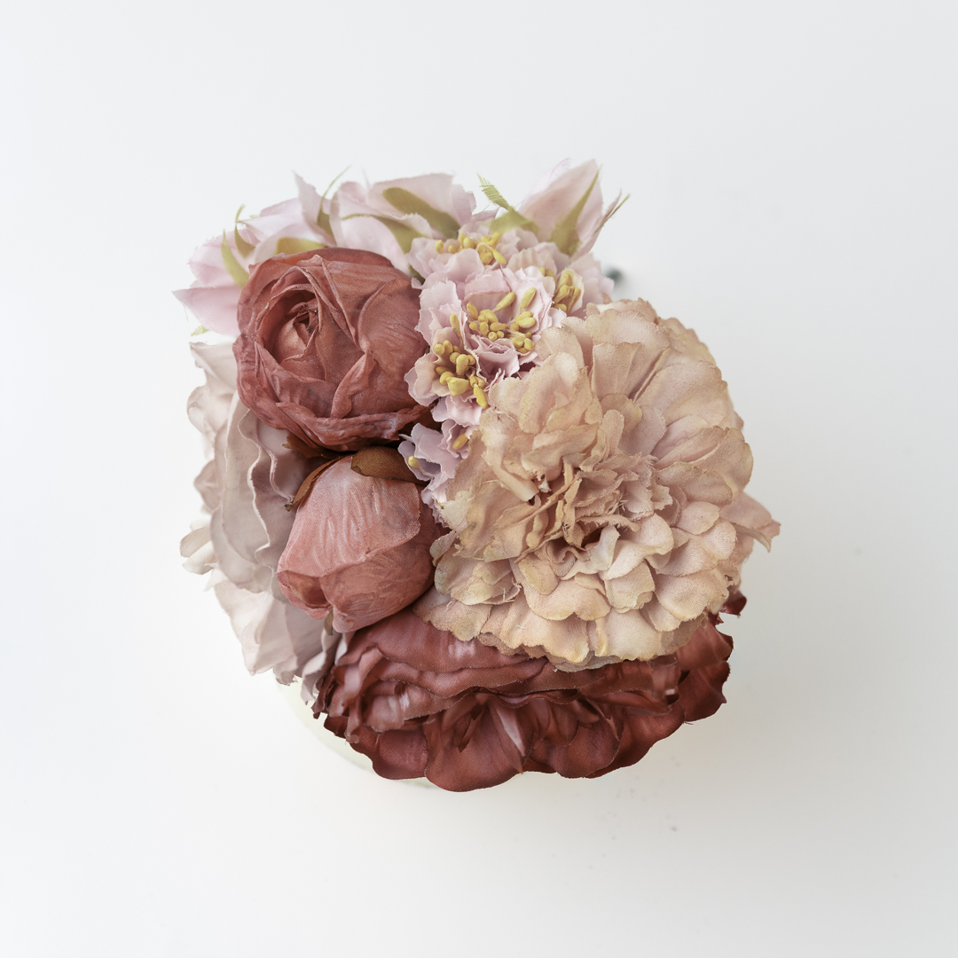 Tiene un diámetro de 18 cm y una longitud de 25 cm si el ramillete se coloca en forma de tiara.