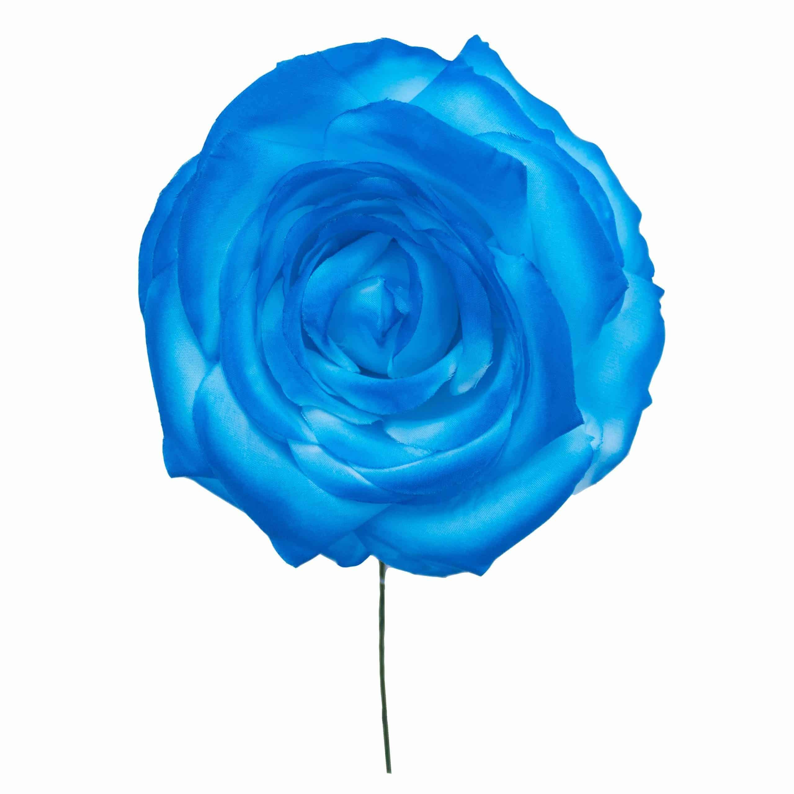 Flor de flamenca estilo rosa, de tamaño mediano, con un diámetro aproximado de 11 cms y color Azul Turquesa. Elaborada artesanalmente en Sevilla.