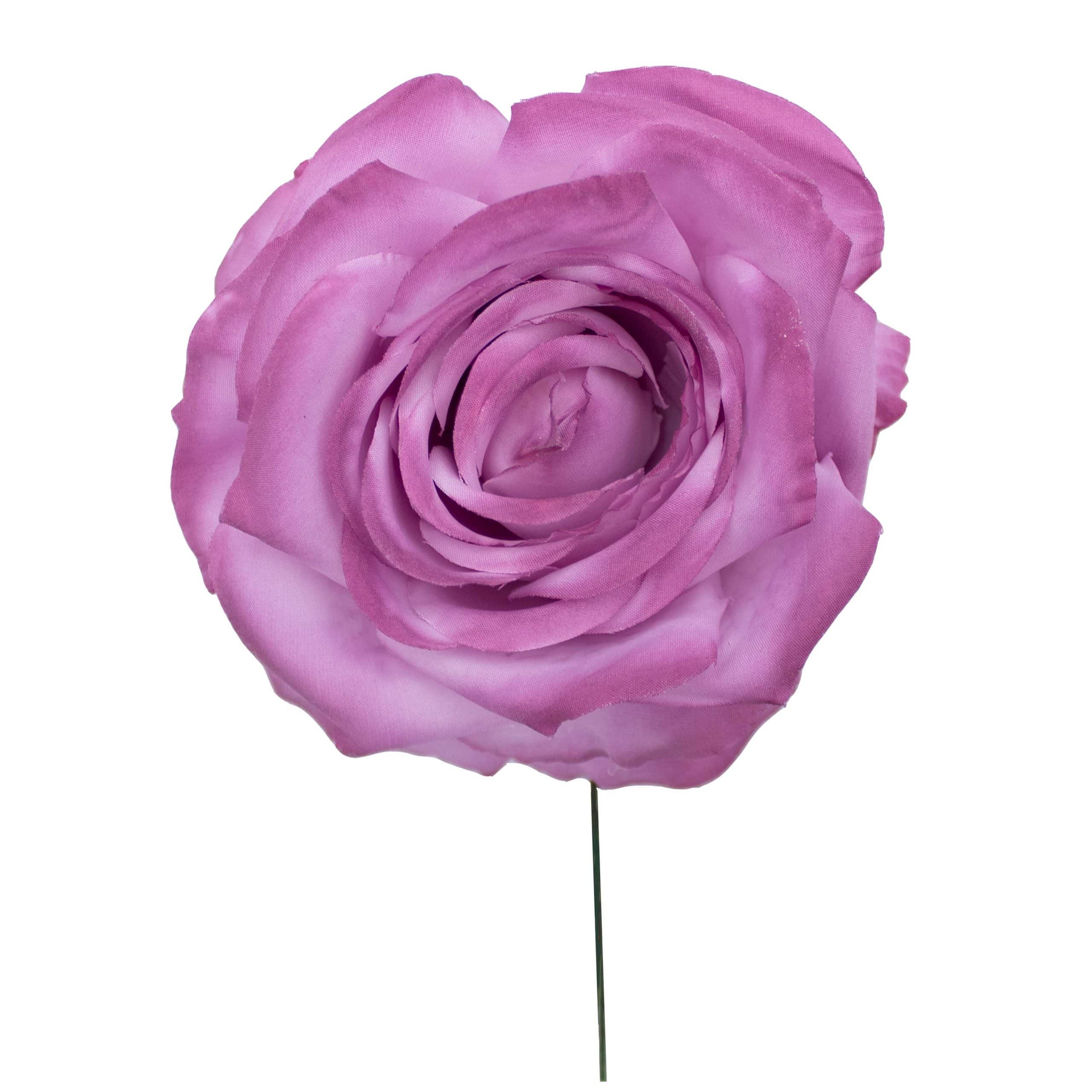 Flor de flamenca estilo rosa, de tamaño mediano, con un diámetro aproximado de 11 cms y color Buganvilla Envejecido. Elaborada artesanalmente en Sevilla.