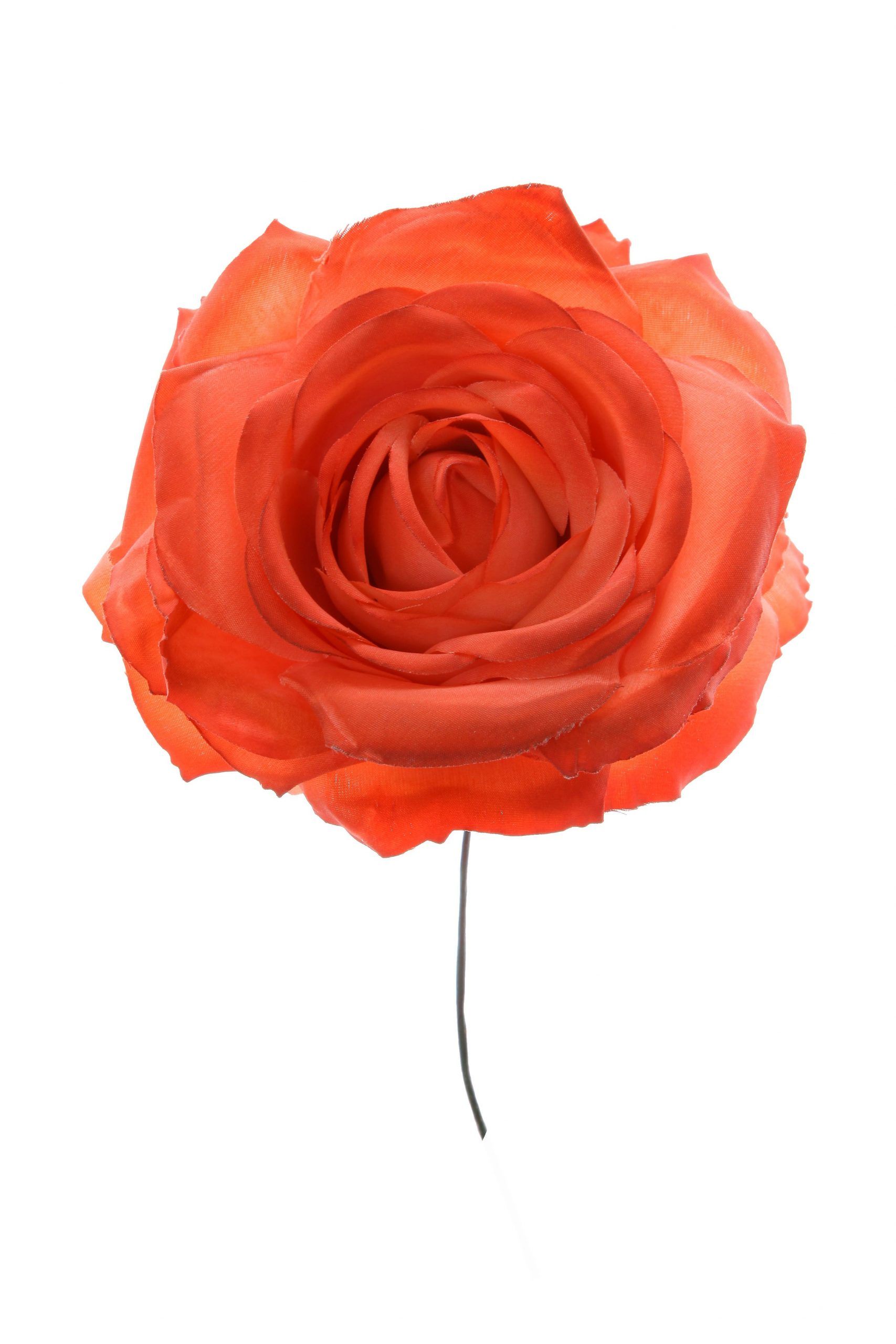 Flor de flamenca estilo rosa, en color coral, de tamaño mediano, con un diámetro aproximado de 12 cms. Elaborada artesanalmente en Sevilla.