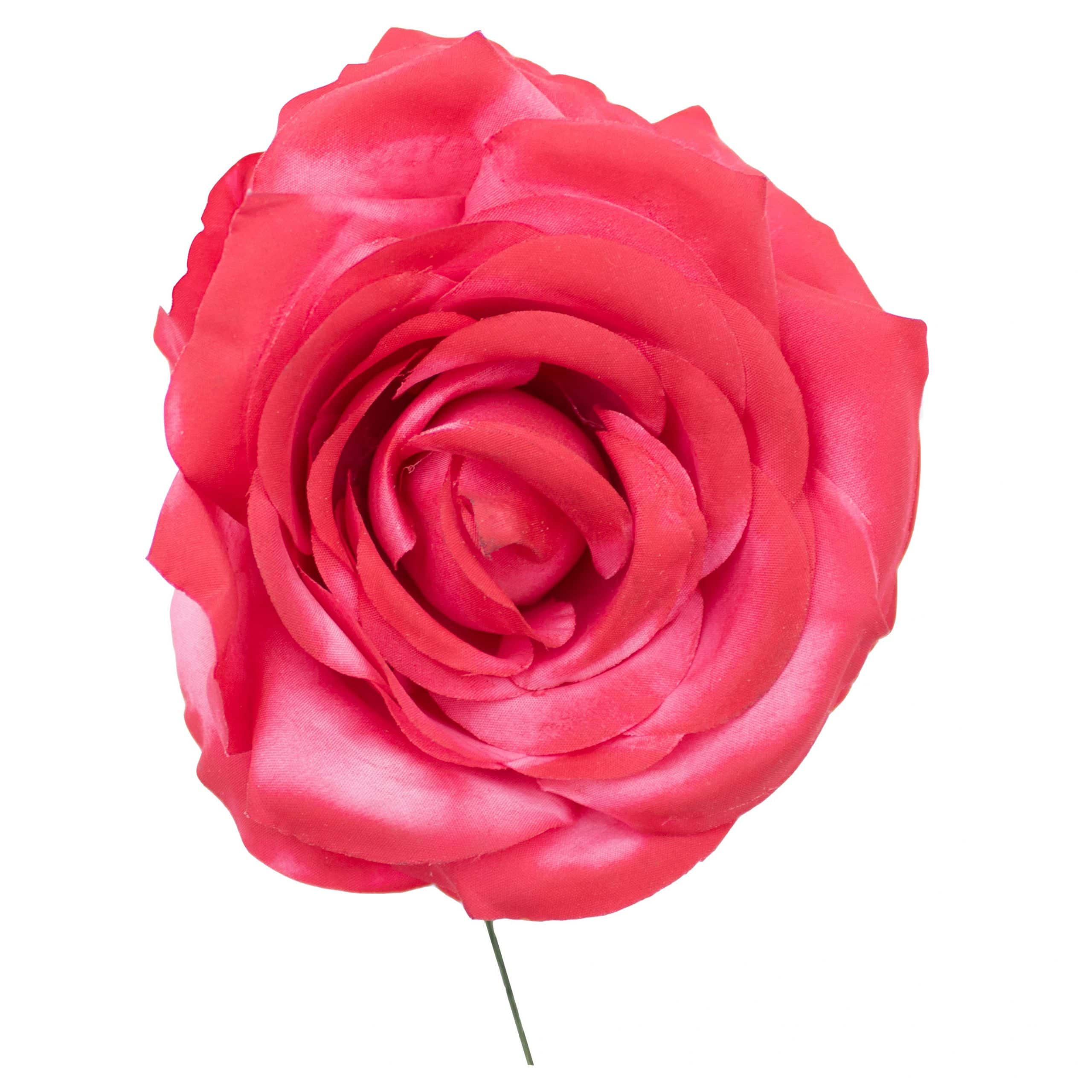 Flor de flamenca estilo rosa, de tamaño mediano, con un diámetro aproximado de 11 cms y color Rojo Guinda. Elaborada artesanalmente en Sevilla.