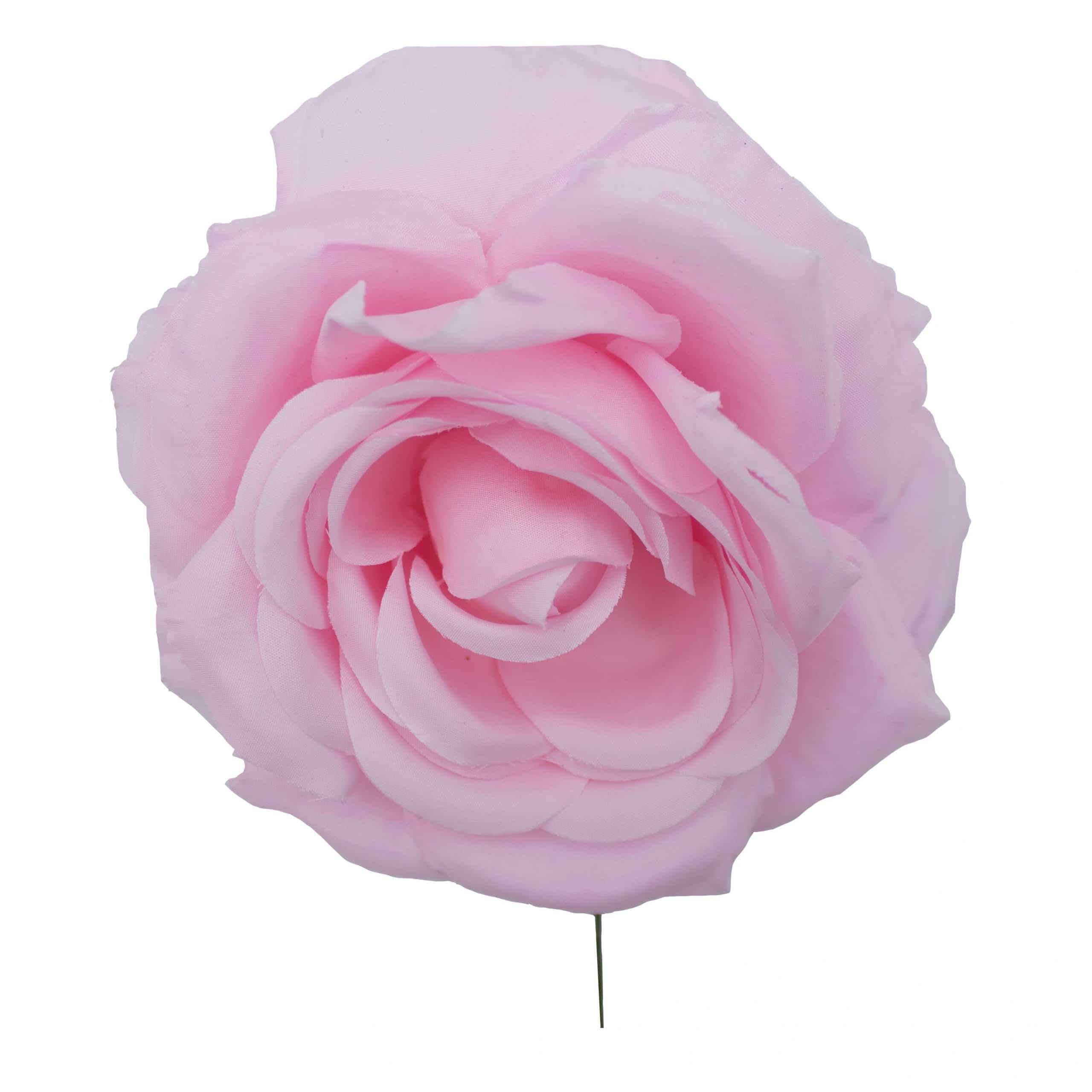Flor de flamenca estilo rosa, de tamaño mediano, con un diámetro aproximado de 11 cms y color Rosa Bebé. Elaborada artesanalmente en Sevilla.