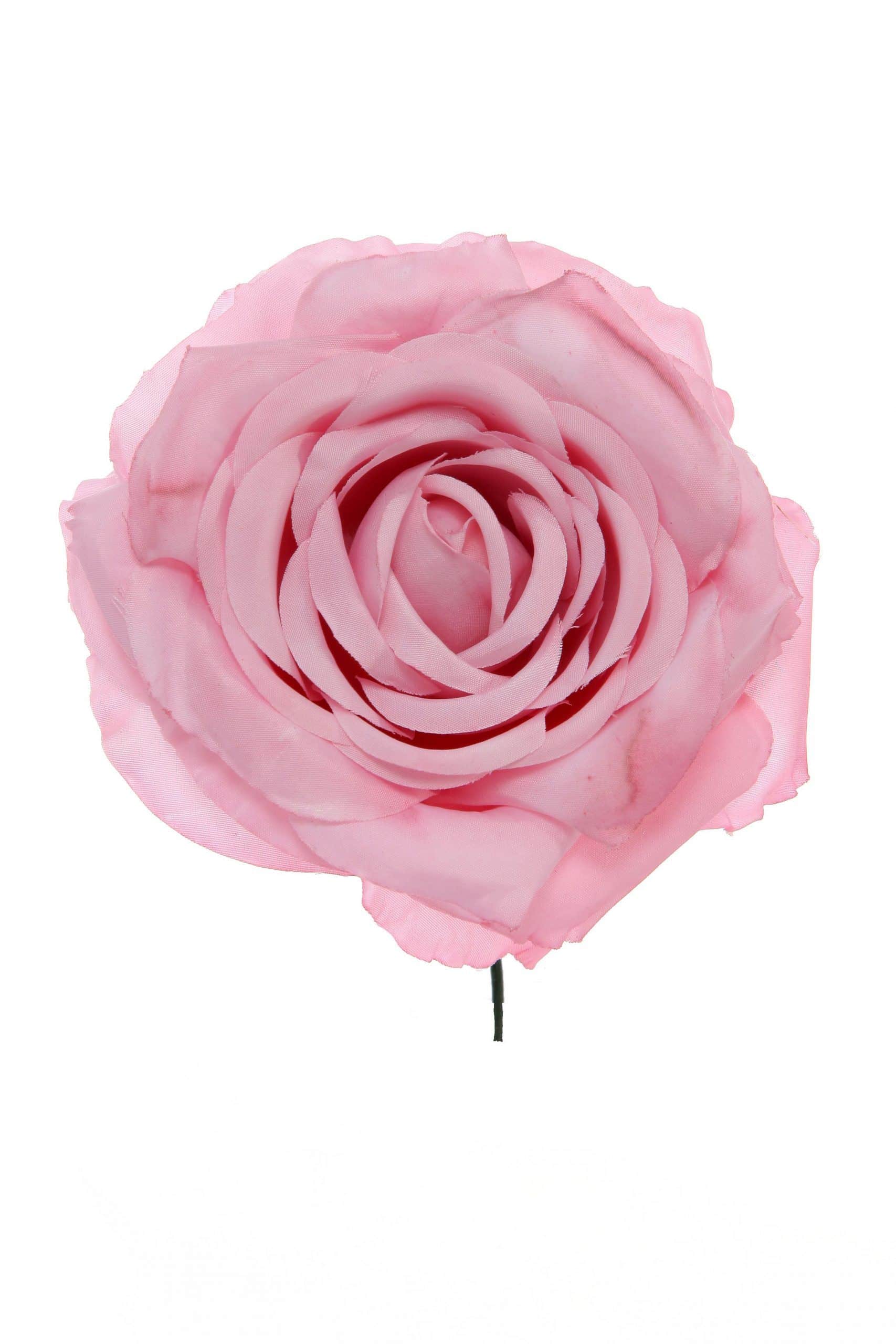 Flor de flamenca estilo rosa, en color rosa claro, de tamaño mediano, con un diámetro aproximado de 12 cms. Elaborada artesanalmente en Sevilla.