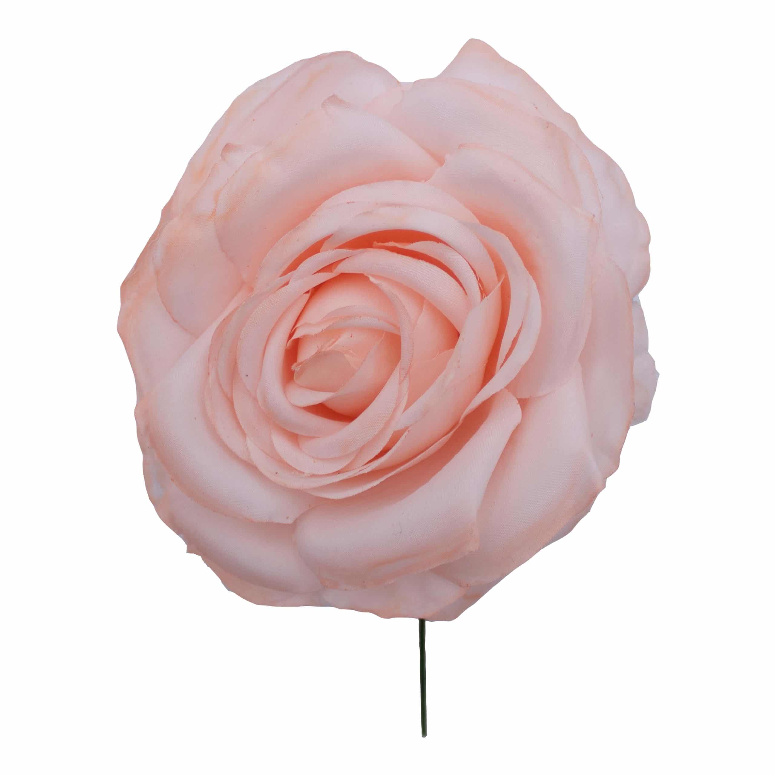 Flor de flamenca estilo rosa, de tamaño mediano, con un diámetro aproximado de 11 cms y color Salmón. Elaborada artesanalmente en Sevilla.