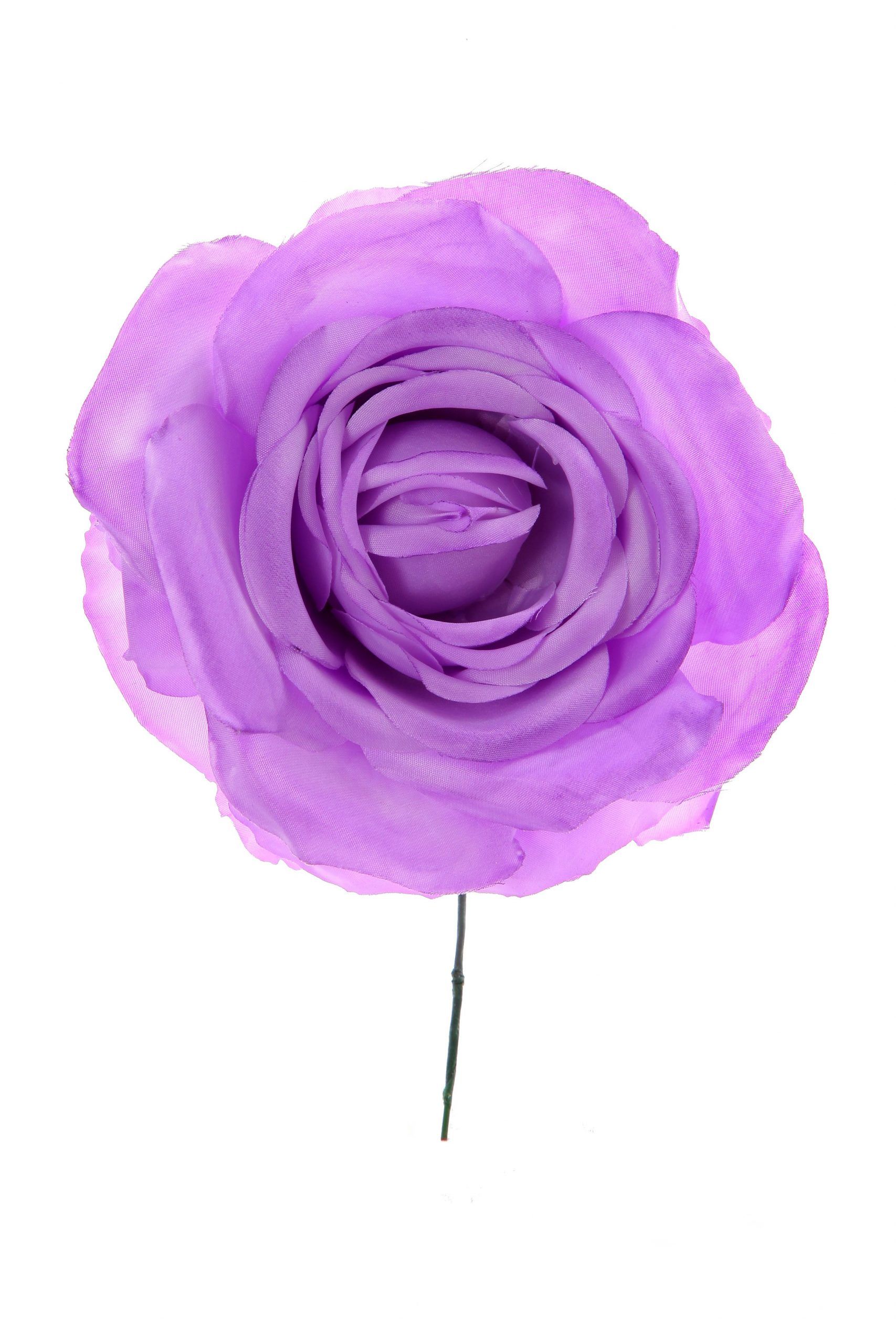 Flor de flamenca estilo rosa, en color lila, de tamaño mediano, con un diámetro aproximado de 12 cms. Elaborada artesanalmente en Sevilla.