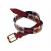 Talla 95- Cinturón unisex rojo de cuero con bordados en azul marino y beige