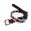 Talla 90- Cinturón unisex marrón de cuero con bordado azul y rosa