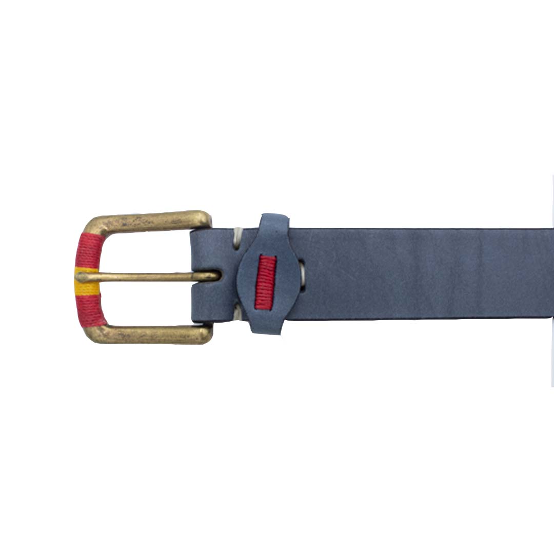 Talla 95-Cinturón unisex azul de cuero con bordados en verde, beige y rojo